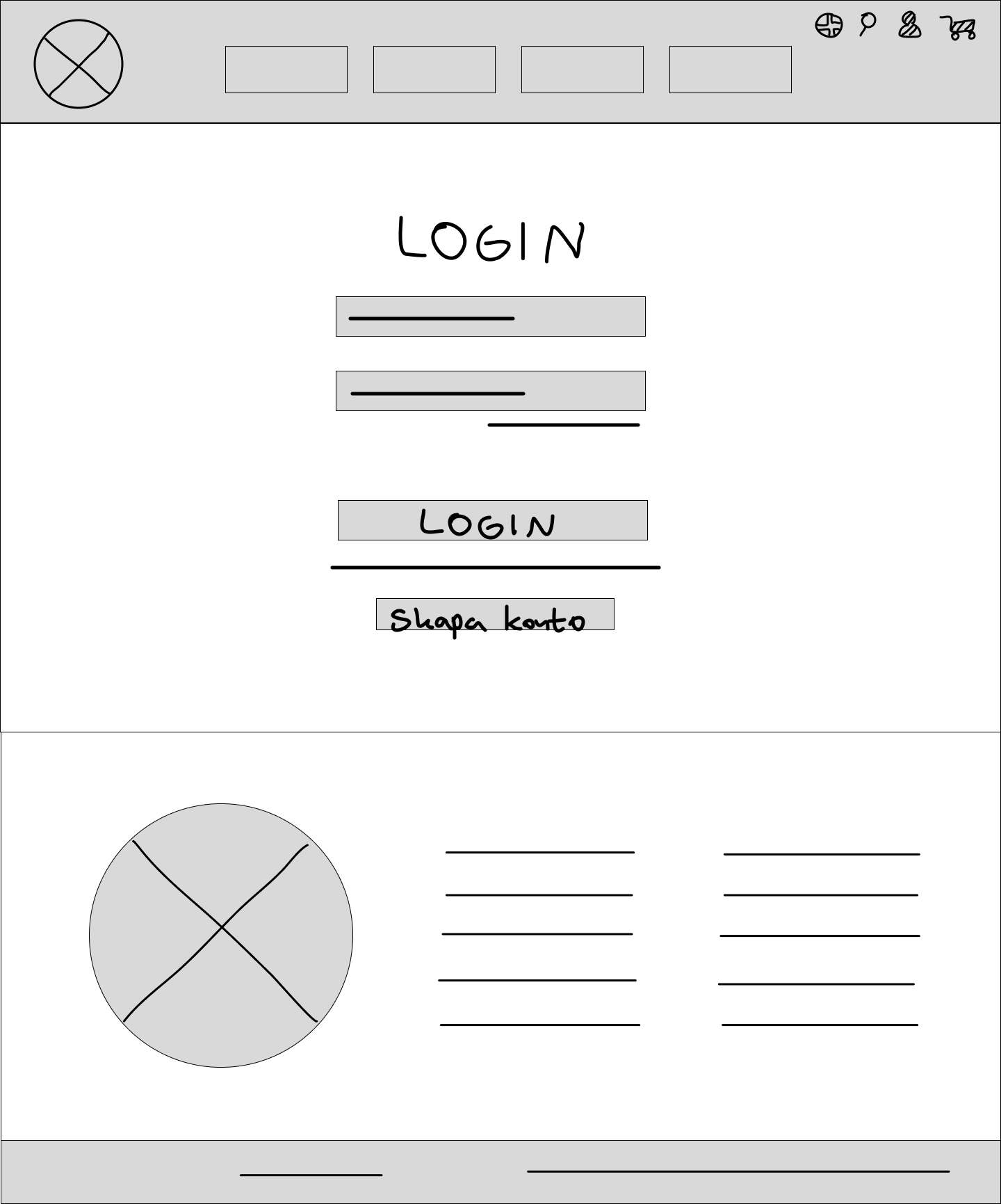 Before I opened figma and started making any substantial prototypes, I opened my drawing software and made some sketches of what I had in mind for the website design. Since these were the first sketches, the final prototypes ended up looking quite different - but it helped me get started.